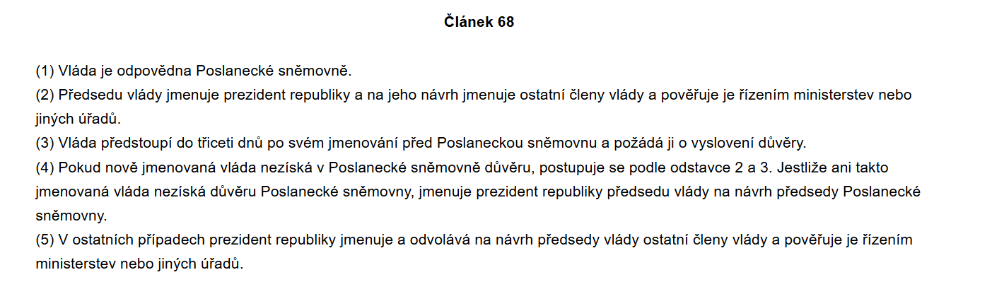 Podle ústavního právníka Ondřeje Preusse by doplnění závaznosti nic nezlepšilo. „Nějaké polovičaté řešení, vlastně jenom pokoutně dávat tlak na konkrétní ustanovení, to si myslím, že nebude fungovat,“ poznamenal. Podmínky pro jmenování ministrů by také údajně neupravoval, protože by to podle něj oslabilo pozici premiéra.