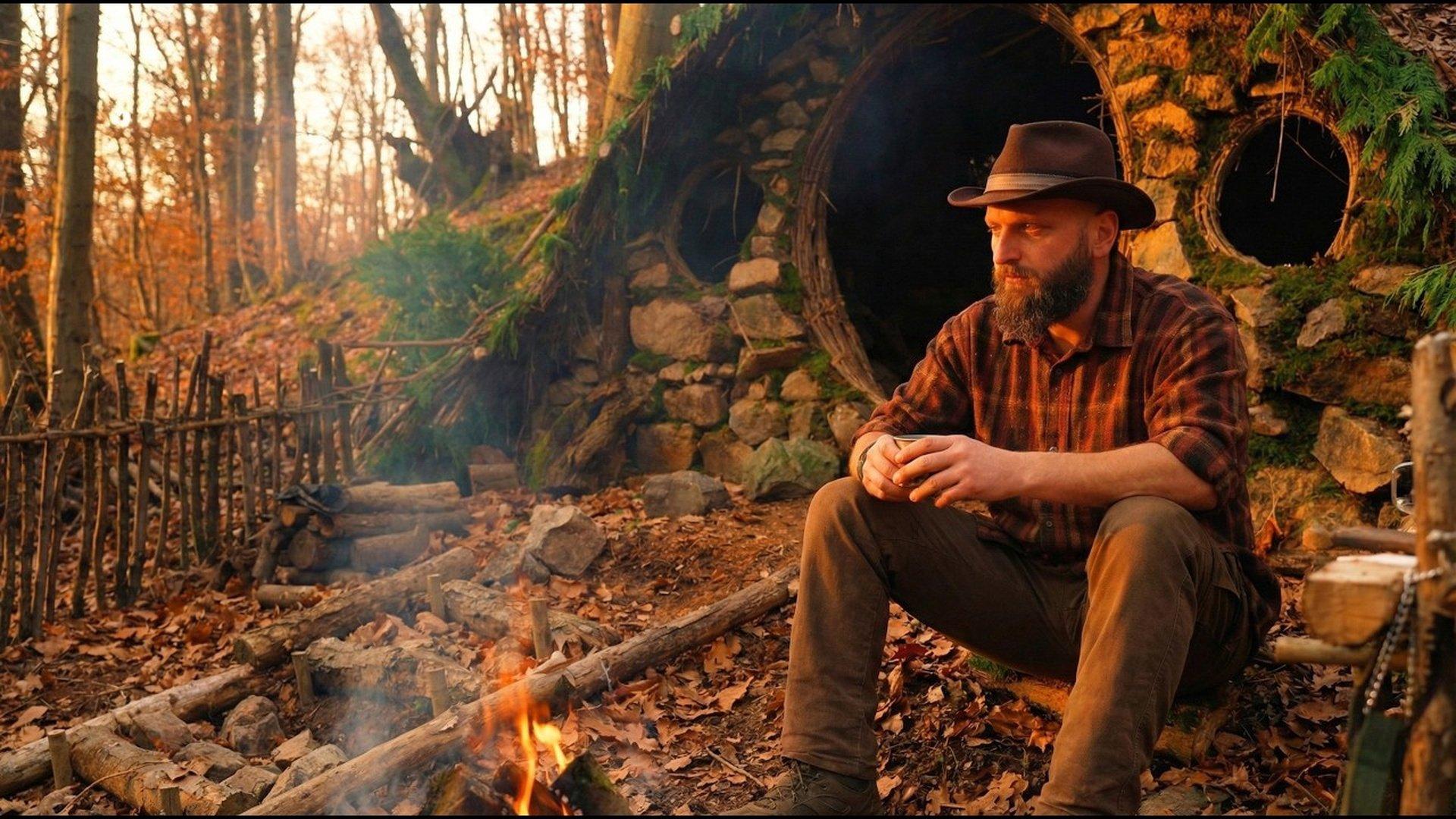 Ormanda Gizli Hobbit Evi | Odunlarla Bahçe Yaptım, Ateşte Et Pişirdim 🔥🍖