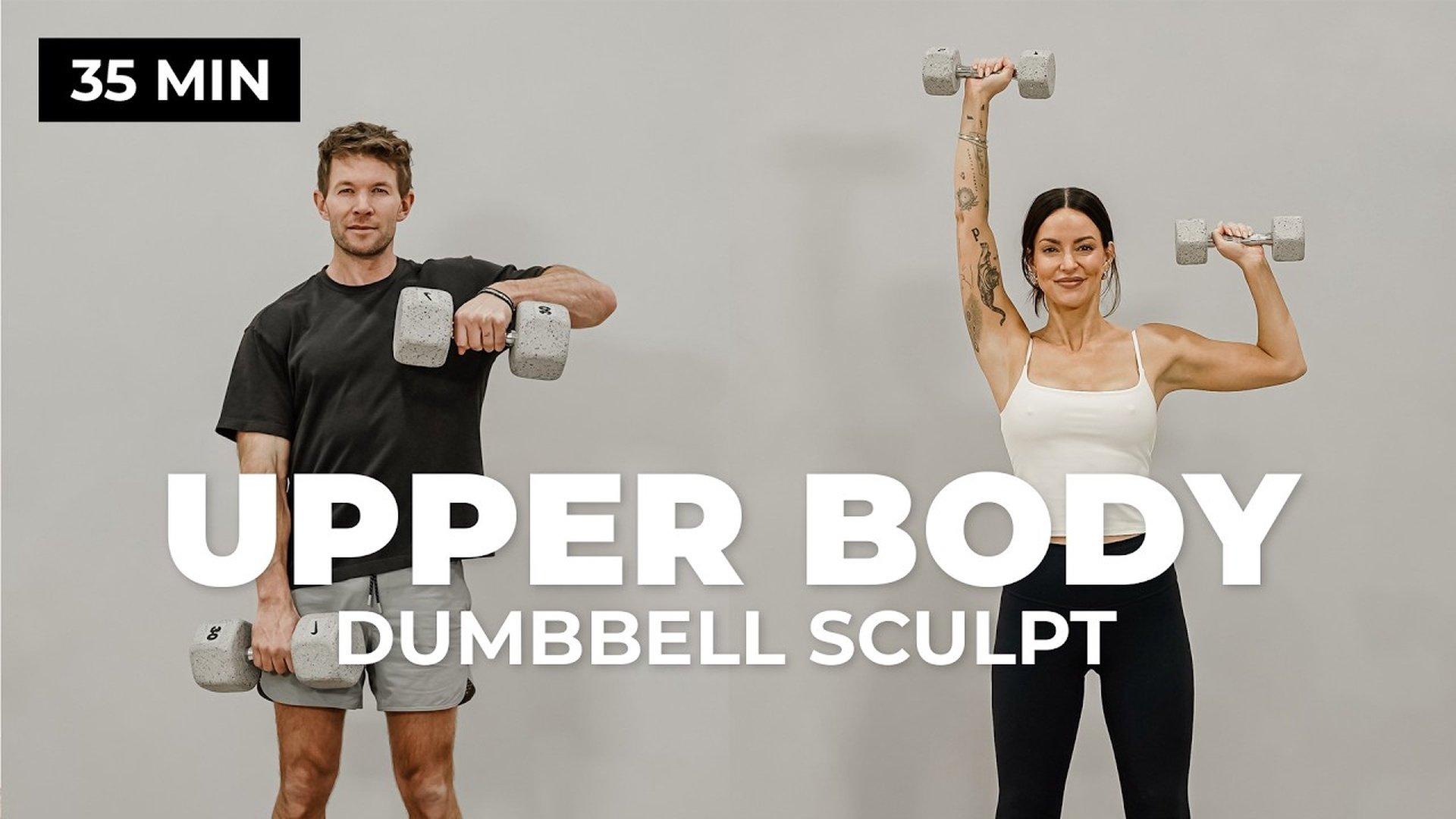 35 Min Upper Body Sculpt + Abs Workout (Dumbbells at Home)
