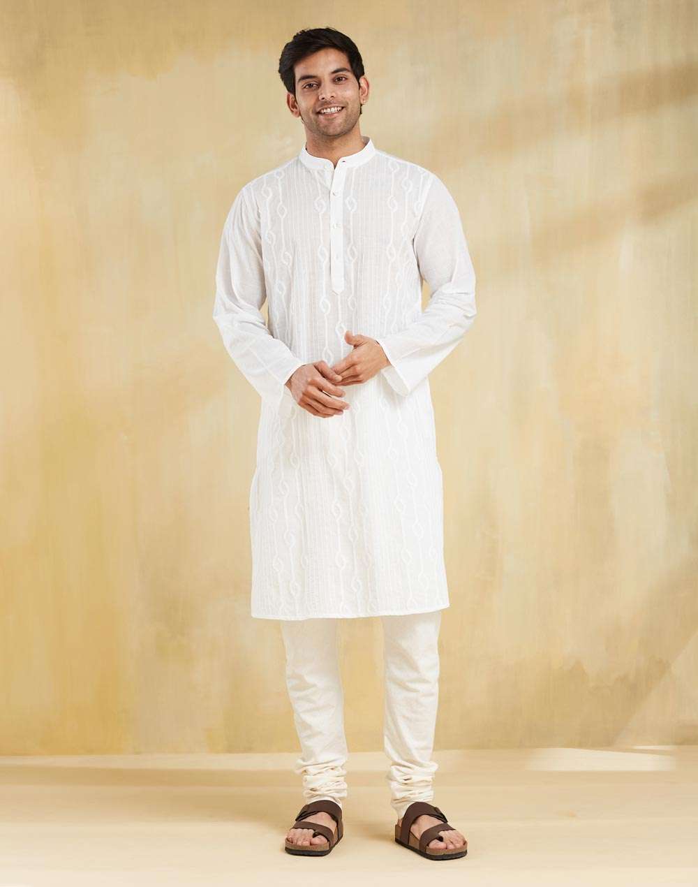 - Breathable Fabric for All-Day Comfort: One of the biggest concerns for students is wearing comfortable clothing throughout the day. Chikankari kurtas are usually made from soft, breathable fabrics like cotton and linen, ensuring maximum comfort, especially in India’s warm climate. Unlike heavy ethnic wear, these kurtas allow free movement, making them ideal for college boys who are always on the go.