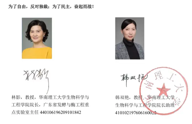 华南理工大学生物科学与工程学院院长林影、韩双艳两位教授实名发表反习共檄文:星星之火,可以燎原!