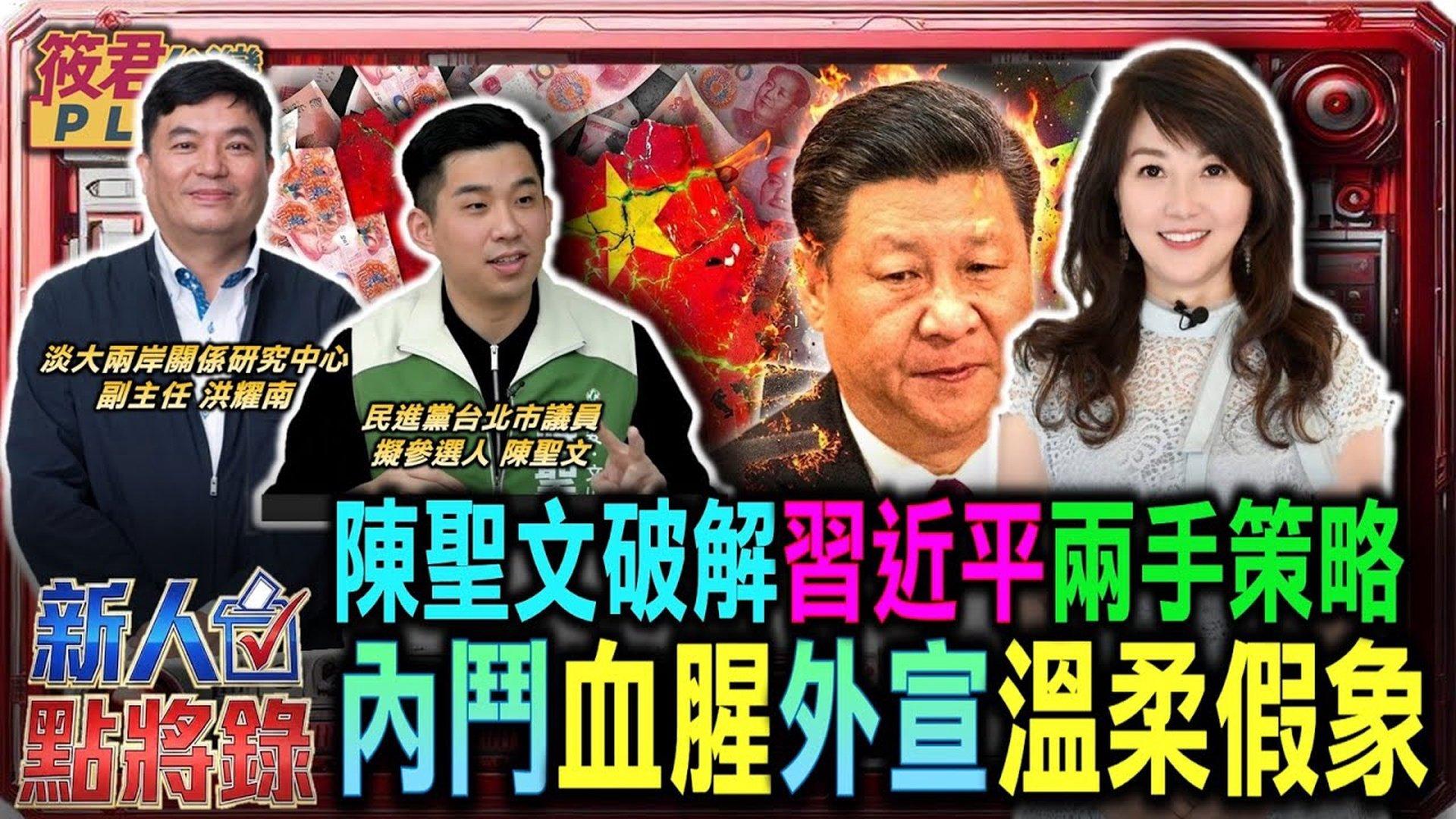 陈圣文破解习近平两手策略:内斗血腥,外宣温柔假象;绿营新秀陈圣文传承王世坚正义精神,勇闯台北市大安区选战;习近平清洗深入水区,红二代护身符全面失效;两岸战略专家洪耀南剖析习近平清洗反映恐惧心态。