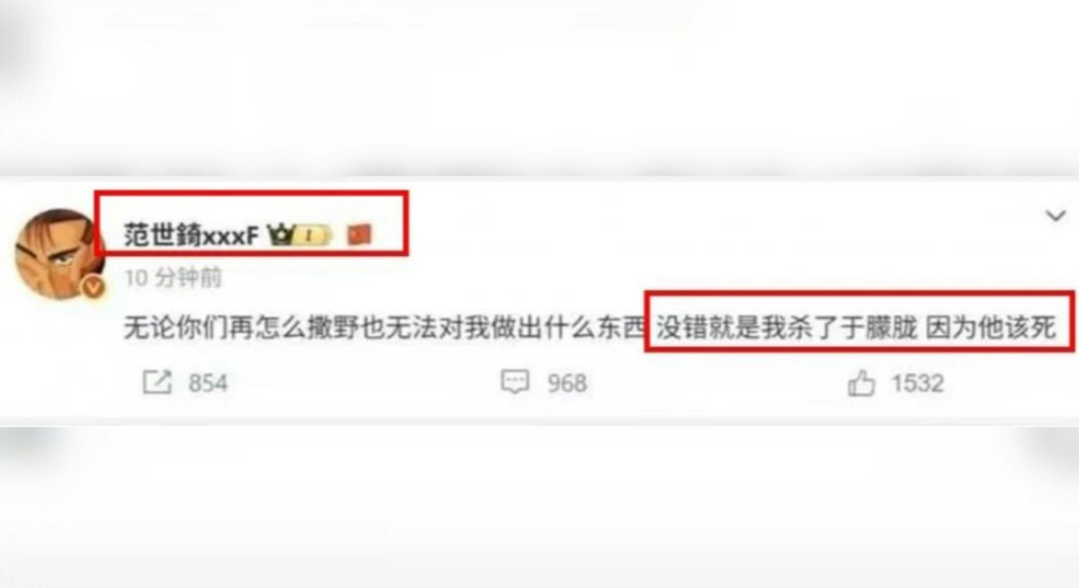 日前有人在微博發現,疑似是范世錡的帳號,發文認了是兇手。(微博截圖)