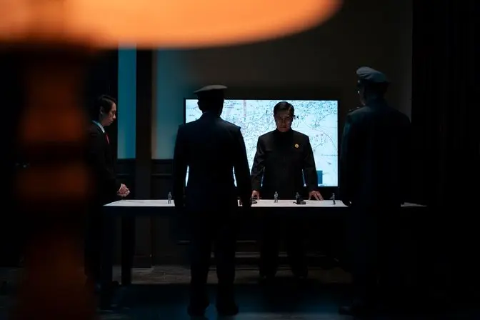 畫面以大面積清冷的基調,對應體制的冰冷與嚴酷,僅在局部保留少量暖色光源作為對衝。這種冷暖關係並非單純的形式美,而是為了營造一種「絕對孤寂」的語境。在此,點滴暖光不再象徵溫度,反而折射出權力核心者那種「獨坐風聲獵獵」的孤懸與危殆。